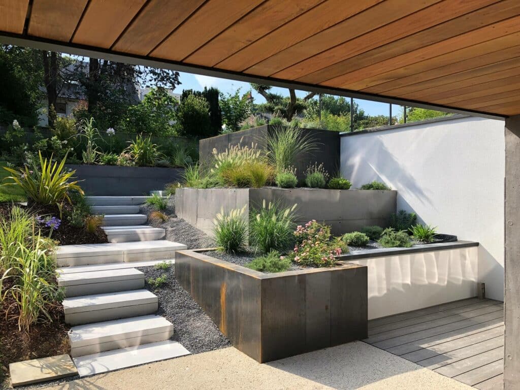 Retrouvez nos réalisations, faites en adéquation avec la topologie du terrain ainsi que les végétaux présents. Contactez nous si vous souhaitez discuter de votre projet de jardin.